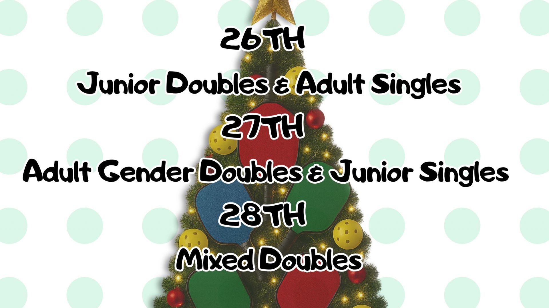 This is a social event that will provide a great escape from the Holiday stresses! Come pickle with your friends or find new ones at our tournament. The schedule is below....you may register for 2 divisions PER DAY, we will do our best to make it happen! The only matches that will go into DUPR will be the money ball event on Sunday afternoon/evening.