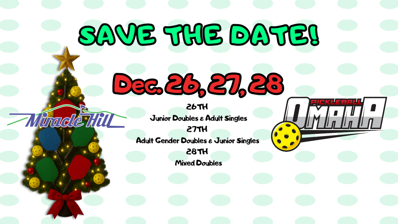 This is a social event that will provide a great escape from the Holiday stresses! Come pickle with your friends or find new ones at our tournament. The schedule is below....you may register for 2 divisions PER DAY, we will do our best to make it happen! The only matches that will go into DUPR will be the money ball event on Friday evening. All courts will have NEW JOOLA NETS!