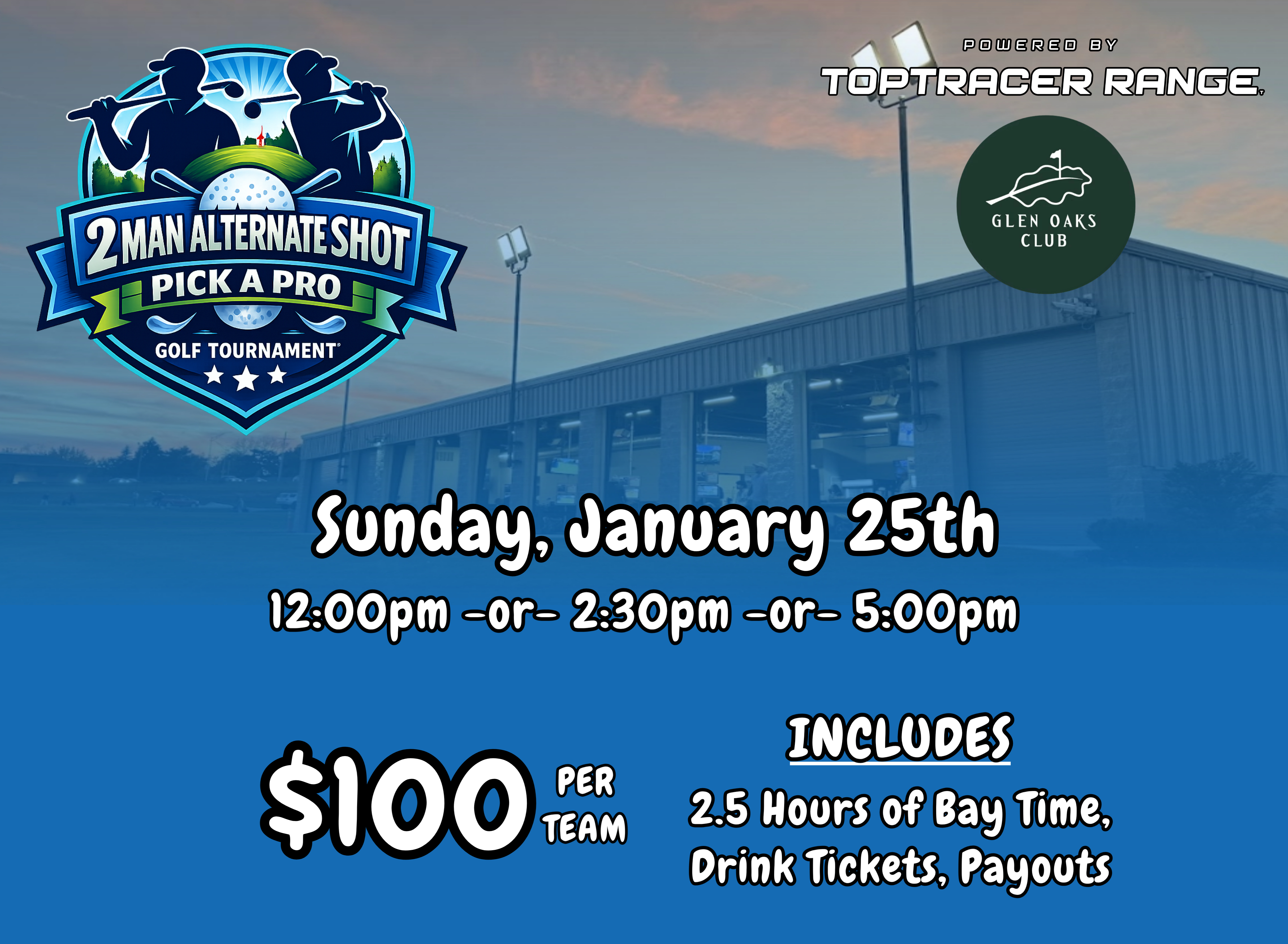 Sign up now for our 2-Man Alternate Shot + Pick-A-Pro in our state of the art TopTracer Range!