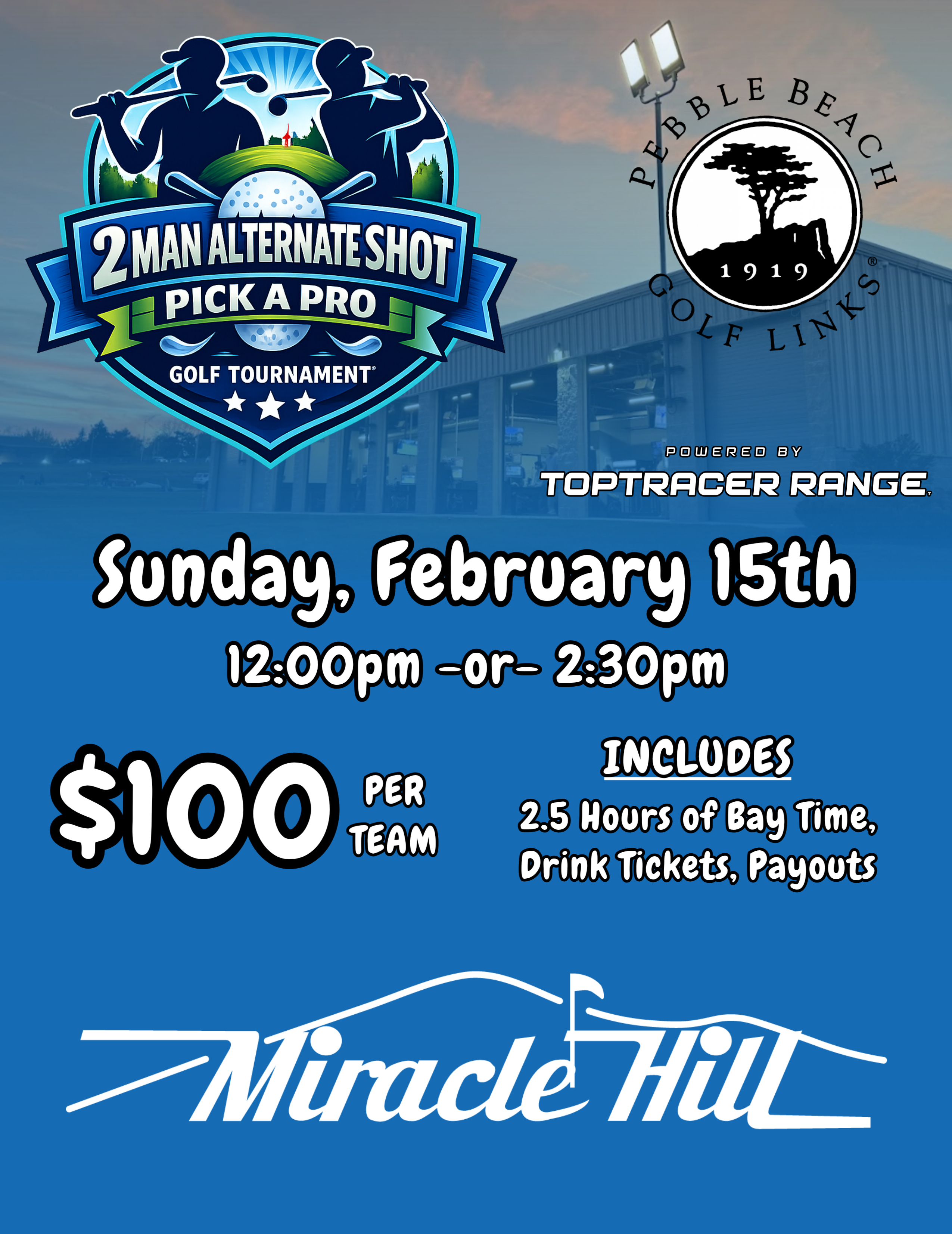 Sign up now for our 2-Man Alternate Shot and Pick-A-Pro tournament powered by TopTracer technology!