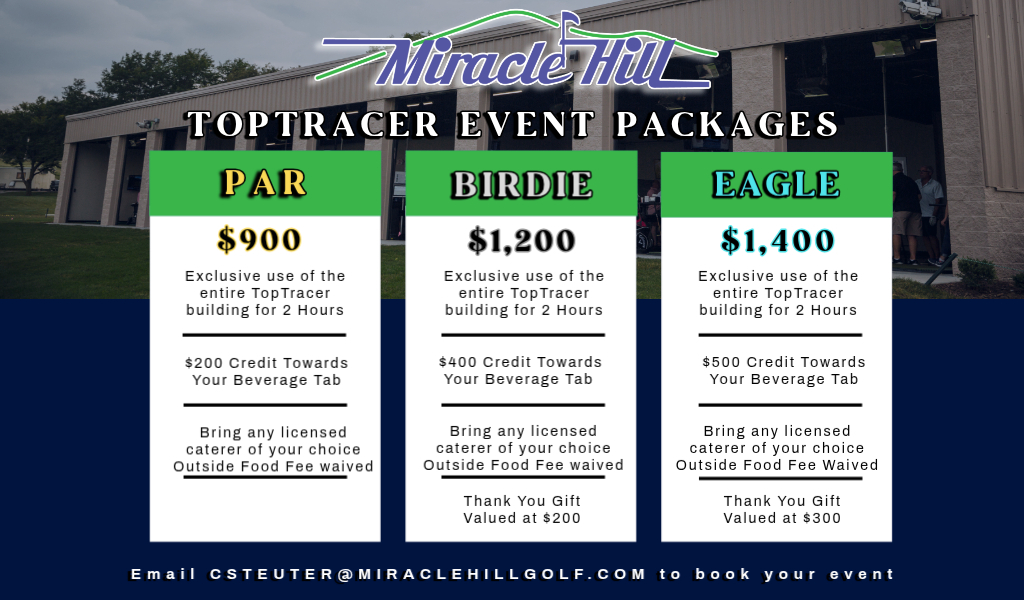 Any questions or to book your event please email Cody at csteuter@miraclehillgolf.com